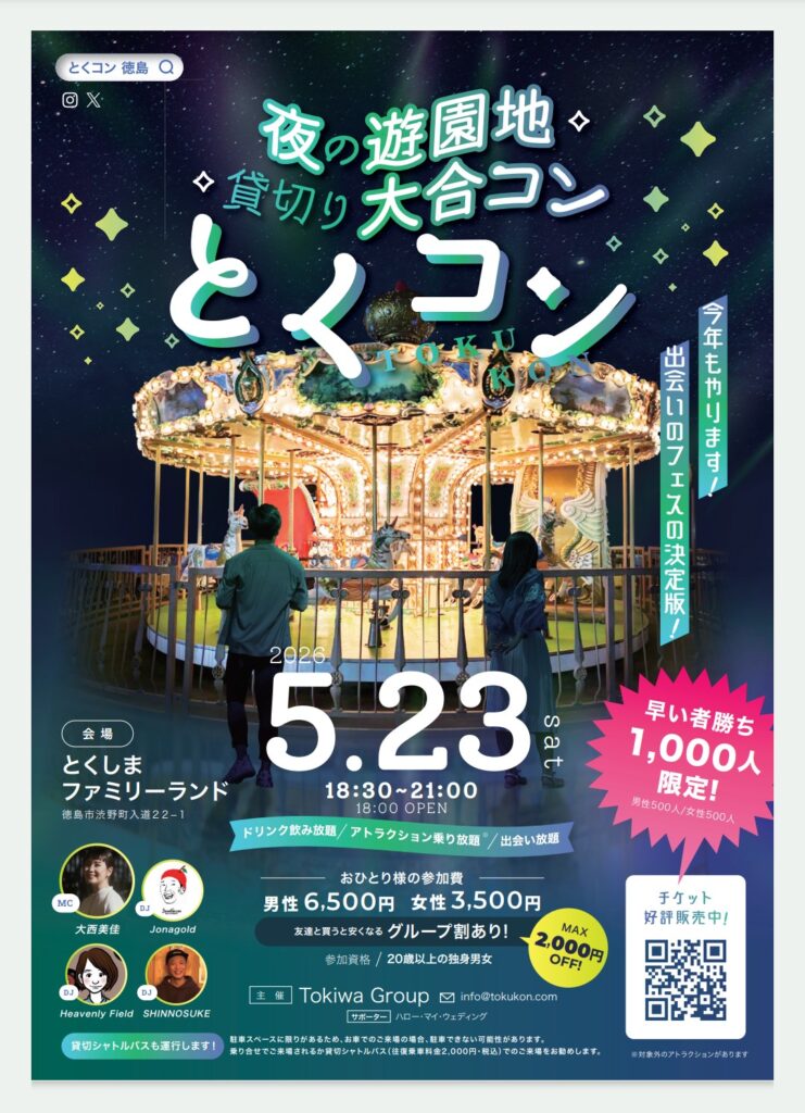 5月23日(土)夜の遊園地貸切り大合コン「とくコン」今年も開催決定!